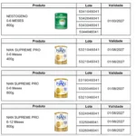 A Agência Nacional de Vigilância Sanitária determinou a proibição da comercialização, distribuição e uso de lotes específicos de fórmulas infantis das marcas Nestogeno, Nan Supreme Pro, Nanlac Supreme Pro, Nanlac Comfor, Nan Sensitive e Alfamino, fabricadas pela Nestlé Brasil Ltda..