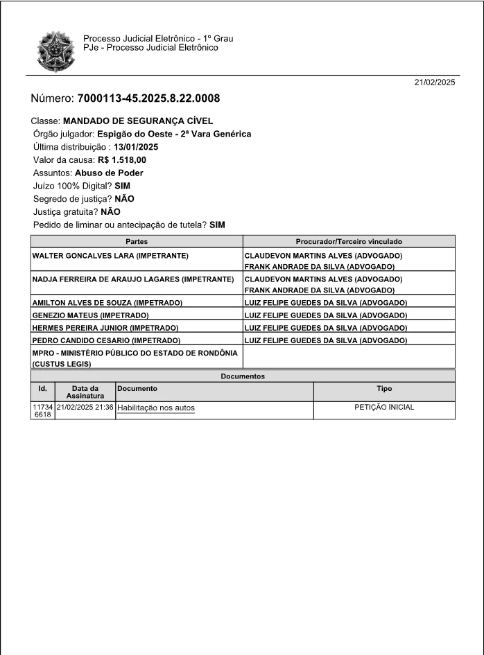 A Justiça anulou a eleição da Mesa Diretora da Câmara de Vereadores de Espigão do Oeste/RO, realizada em 1º de janeiro de 2025. Com isso, uma nova eleição deverá ocorrer no prazo de até 30 dias após a notificação oficial.