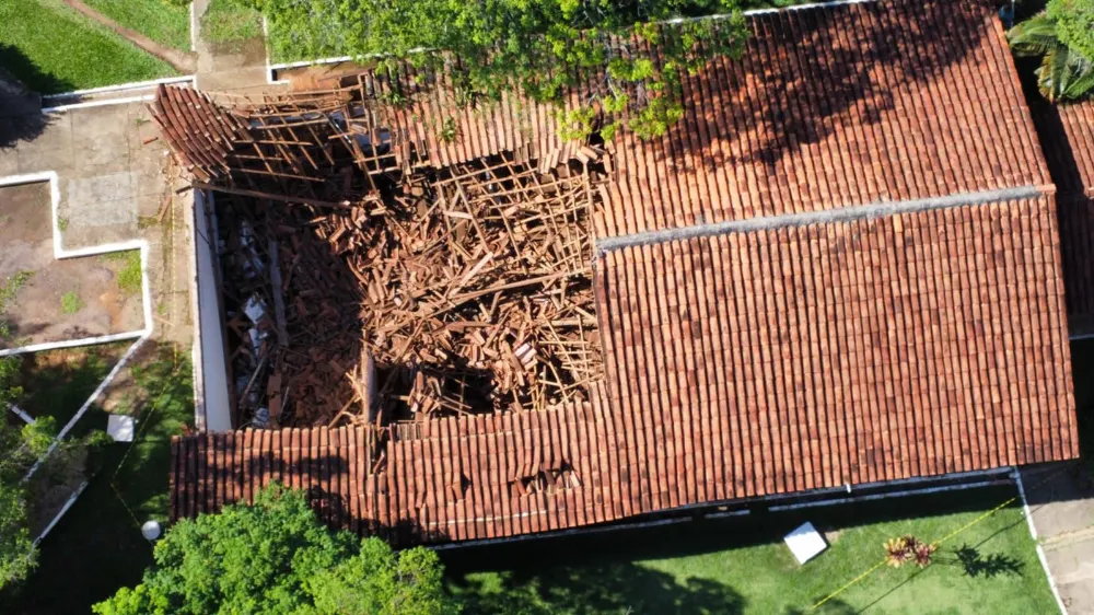Telhado de pavilhão da Prefeitura de Vilhena desaba